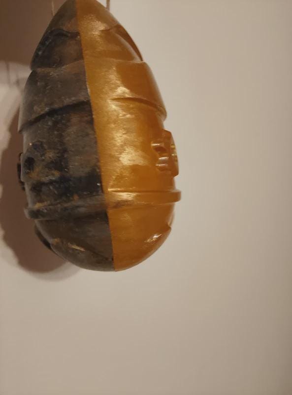 A handmade decorative egg crafted from resin, natural shell powder, and metallic paint.