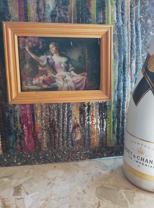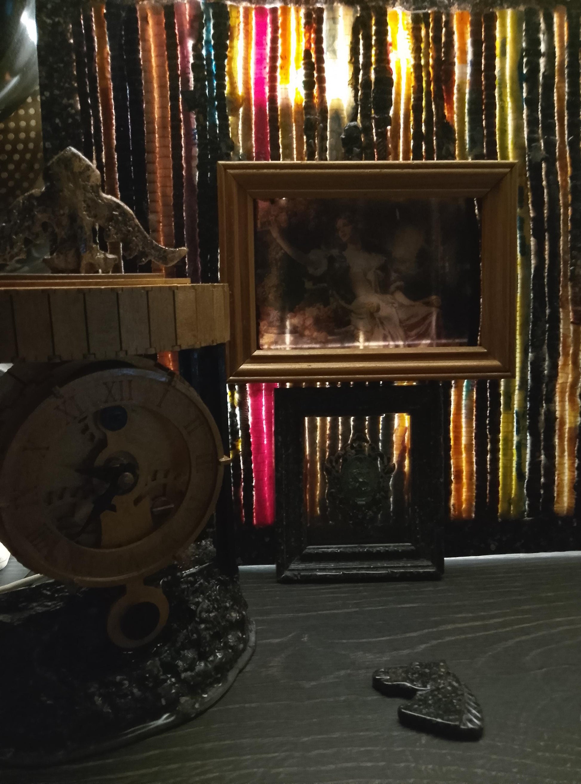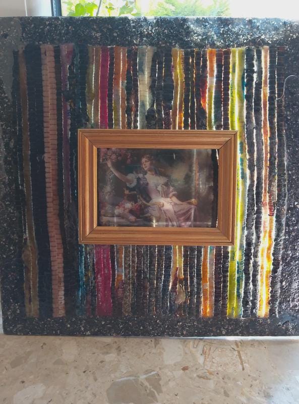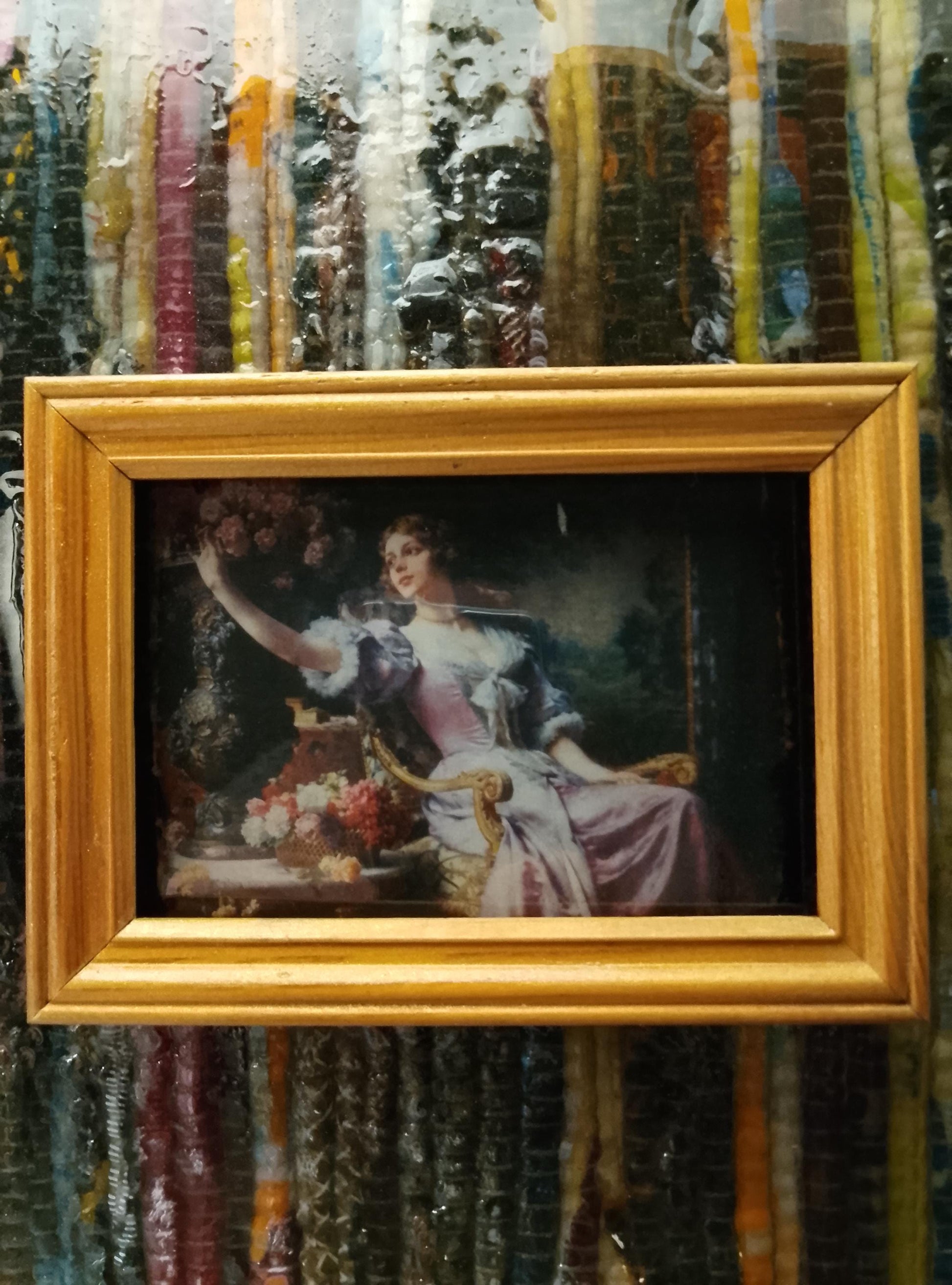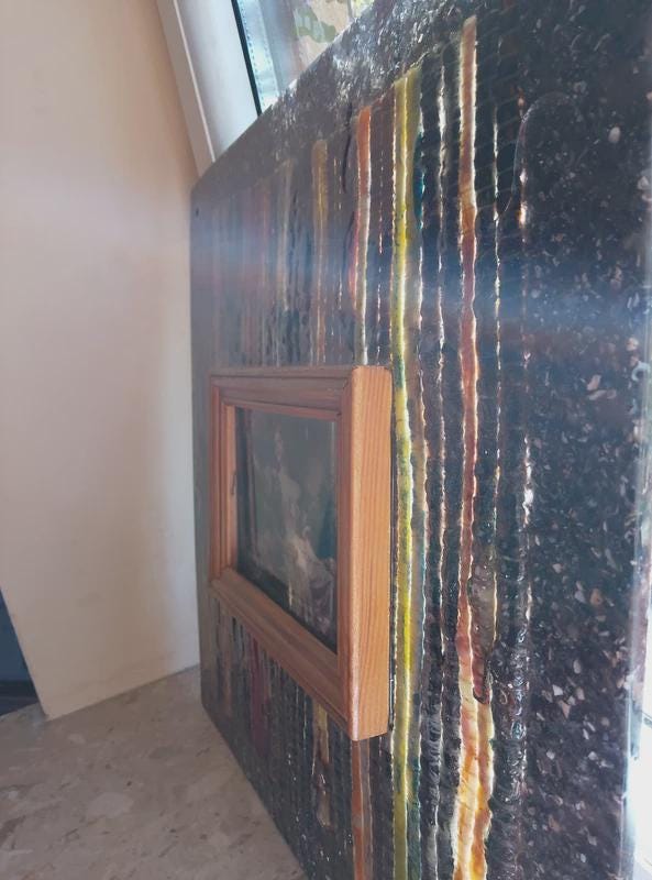Уникальная художественная композиция — «Картина в картине» — изготовлена вручную из эпоксидной смолы, натурального ракушечного порошка, дерева, краски и декоративных материалов.