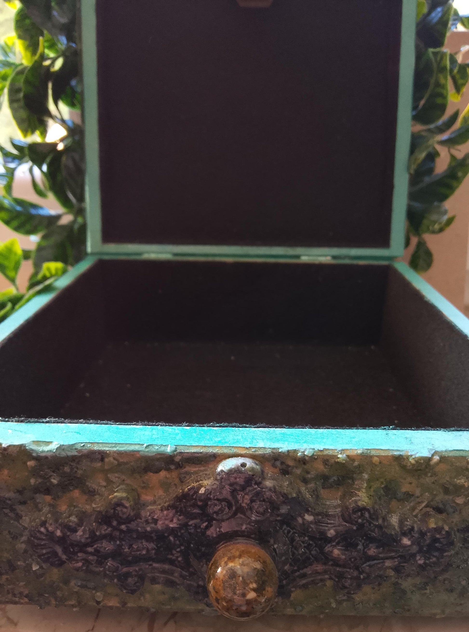 A unique handmade box with an artistic soul — perfect for storing jewelry, keepsakes, or other small treasures.